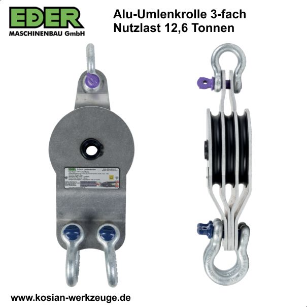 Mit der EDER Dreifachumlenkrollen für den Bodenzug, kann insbesondere in Kombination mit den EDER - Powerwinches ein extrem zugkraftstarkes