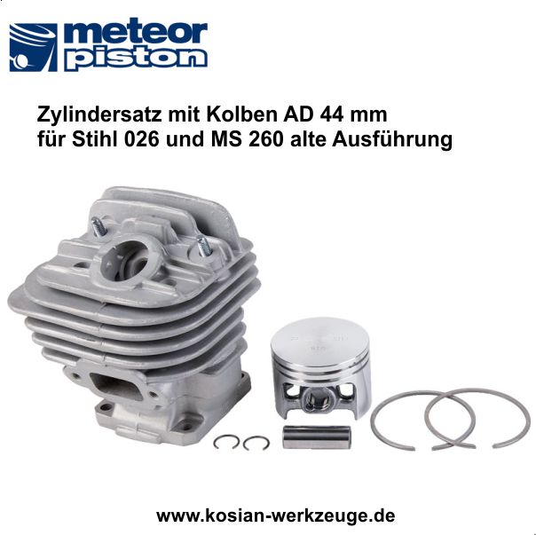 Meteor Zylindersatz mit Kolben für Stihl MS 260 oder 026 alte Ausführung